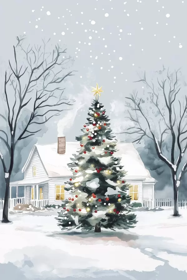 Poster Ciudad invernal, pino decorado, Navidad, acuarela Nr f41364