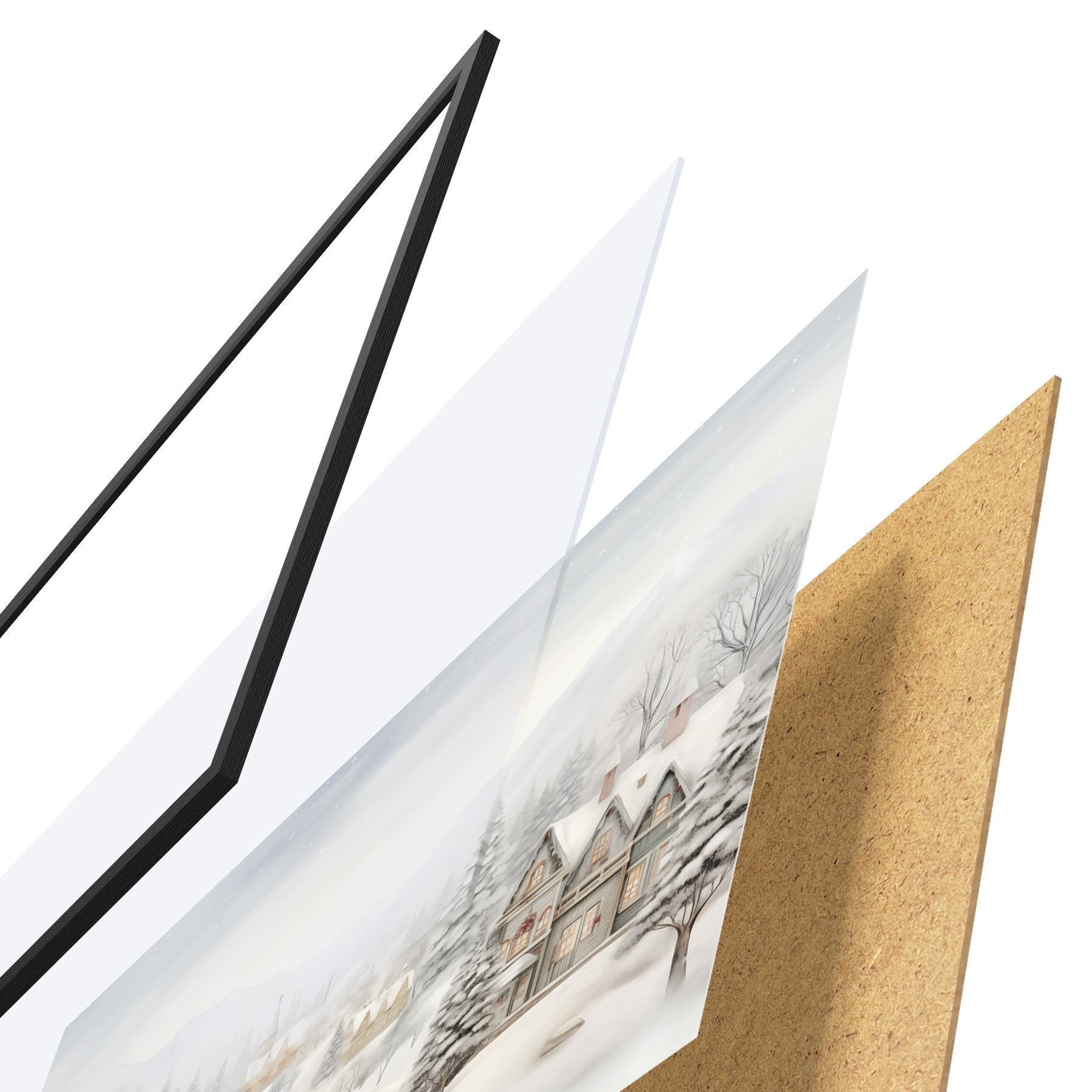 El póster consta de marco, plexiglás, imagen impresa y soporte de aglomerado. El póster puede colgarse inmediatamente en la pared gracias a los soportes de la parte posterior.