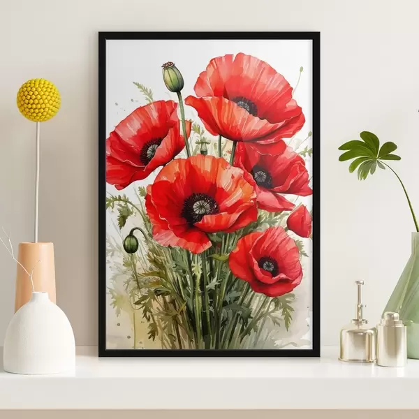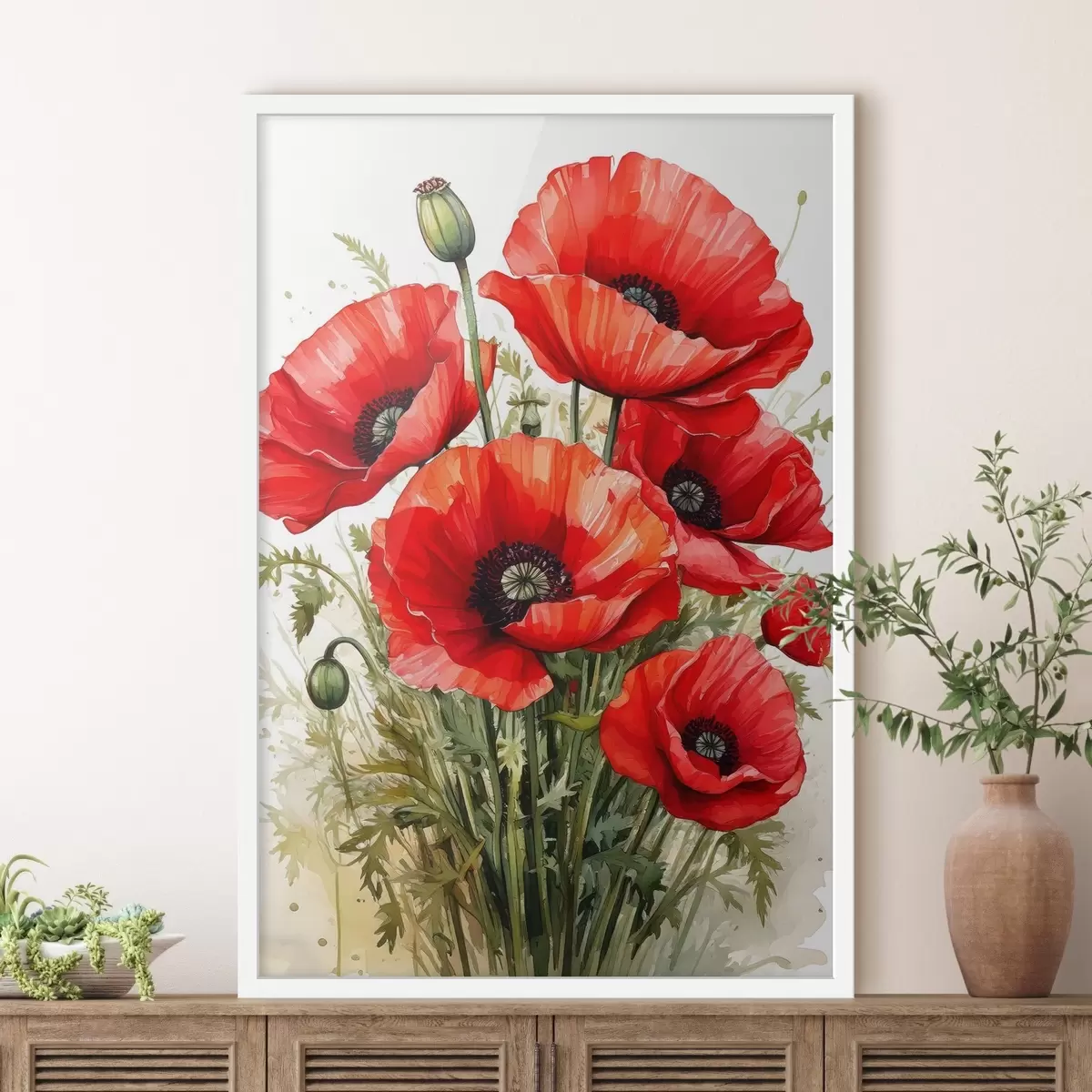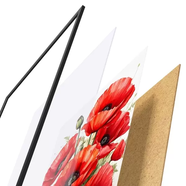El póster consta de marco, plexiglás, imagen impresa y soporte de aglomerado. El póster puede colgarse inmediatamente en la pared gracias a los soportes de la parte posterior.