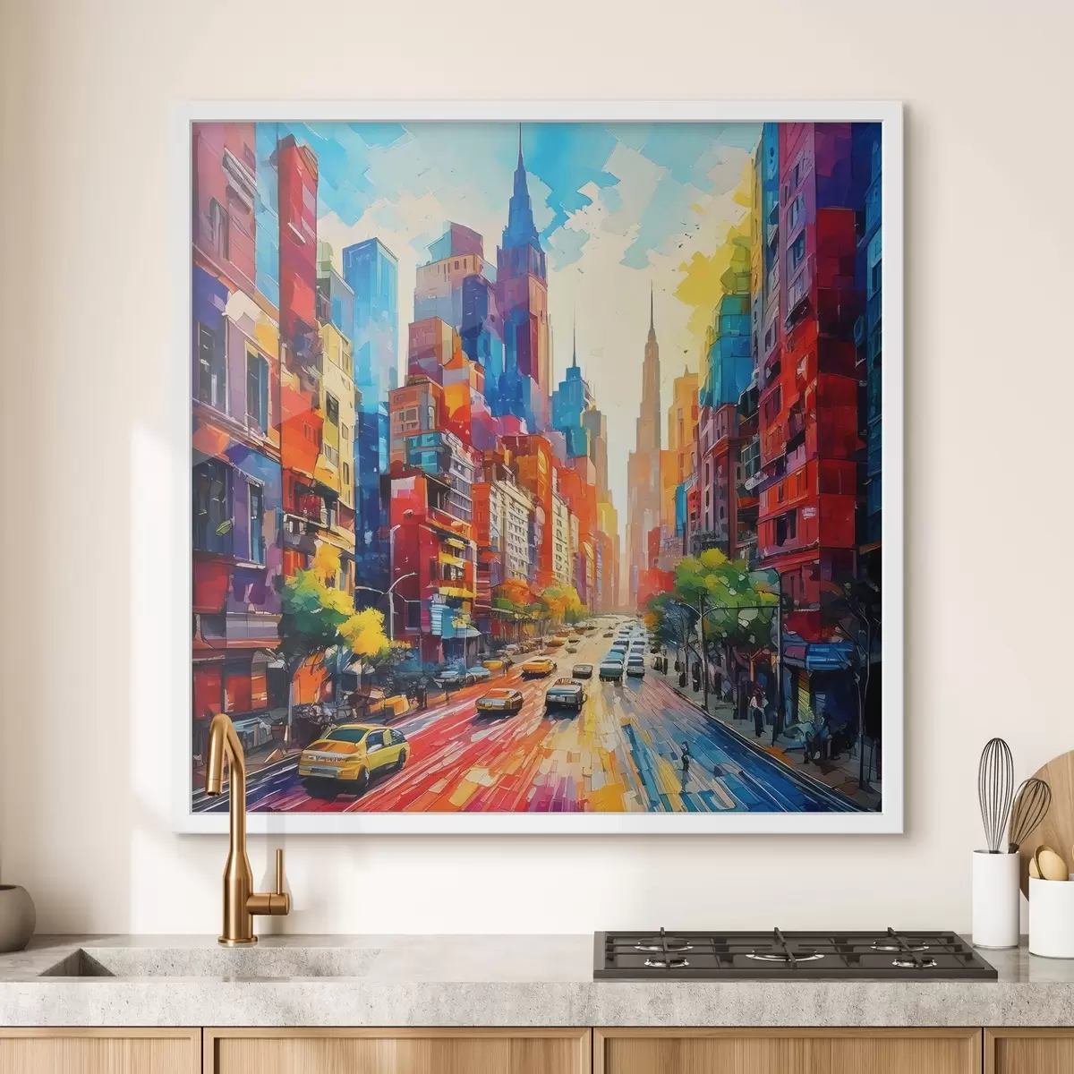 Vendemos cuadros en bastidor: se trata de un marco de madera sobre el que se extiende el lienzo. Este cuadro no necesita marco; puedes colgarlo directamente en la pared.