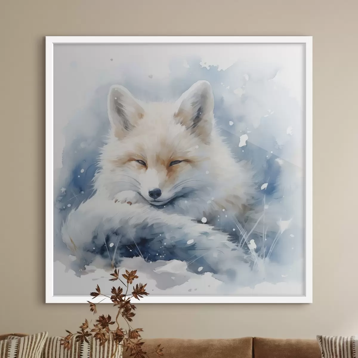 Poster Zorro en la nieve imitación de acuarela ilustración f41436