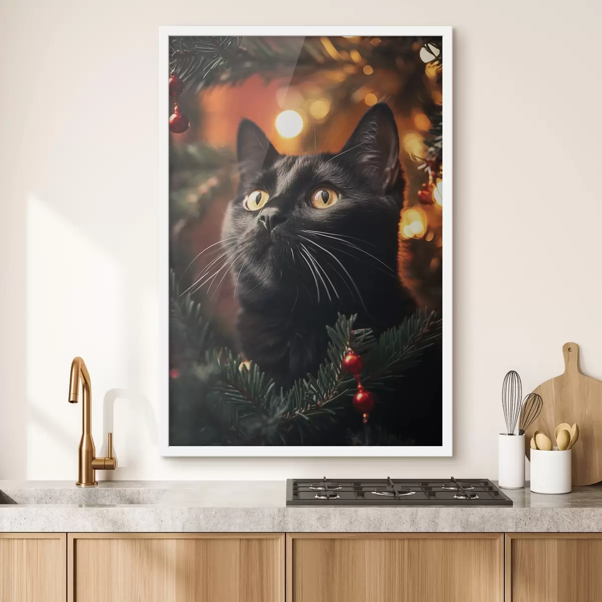 Poster Gato negro sobre el fondo de luces de Año Nuevo f41441