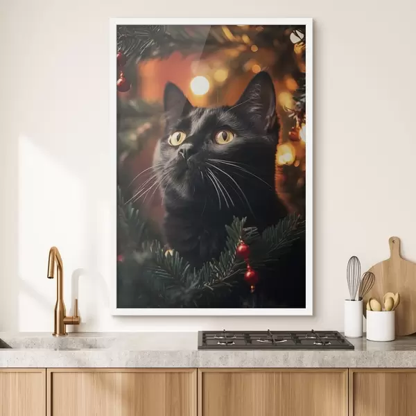 Poster Gato negro sobre el fondo de luces de Año Nuevo Nr f41441