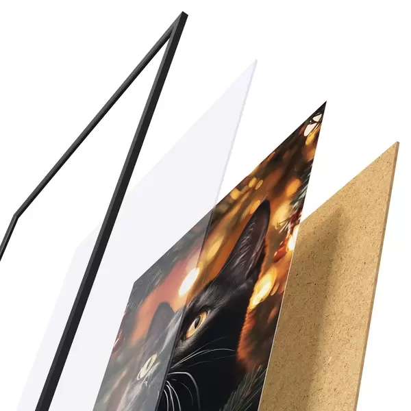 El póster consta de marco, plexiglás, imagen impresa y soporte de aglomerado. El póster puede colgarse inmediatamente en la pared gracias a los soportes de la parte posterior.
