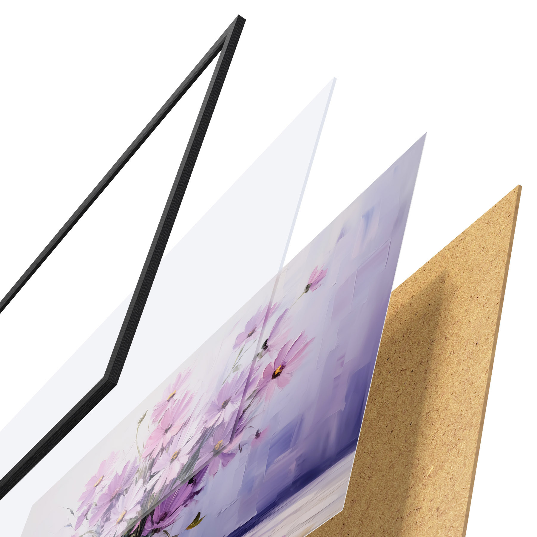 El póster consta de marco, plexiglás, imagen impresa y soporte de aglomerado. El póster puede colgarse inmediatamente en la pared gracias a los soportes de la parte posterior.