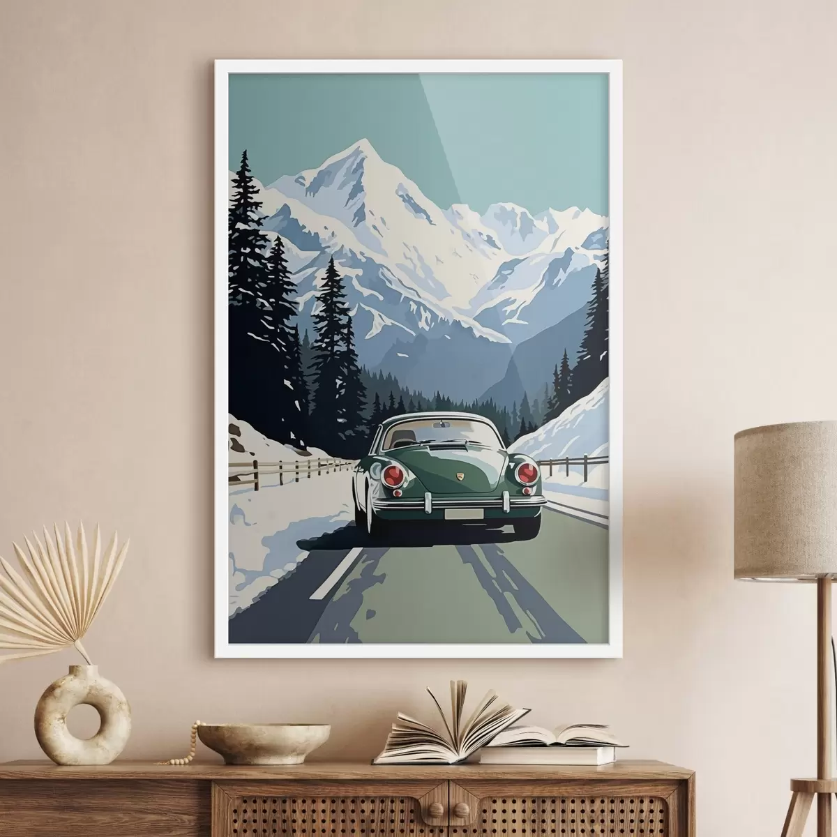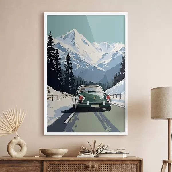 Poster Coche retro en carretera de montaña invernal Nr f41478