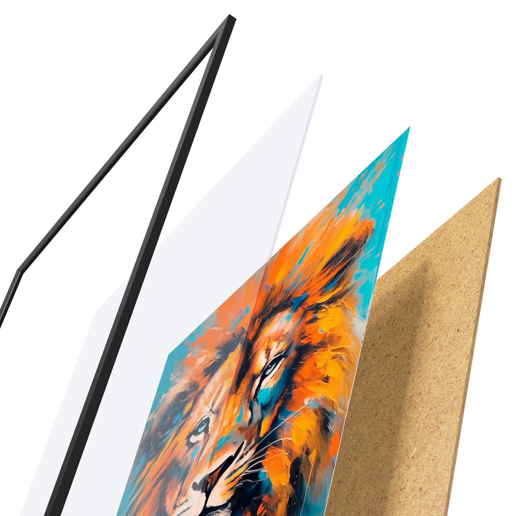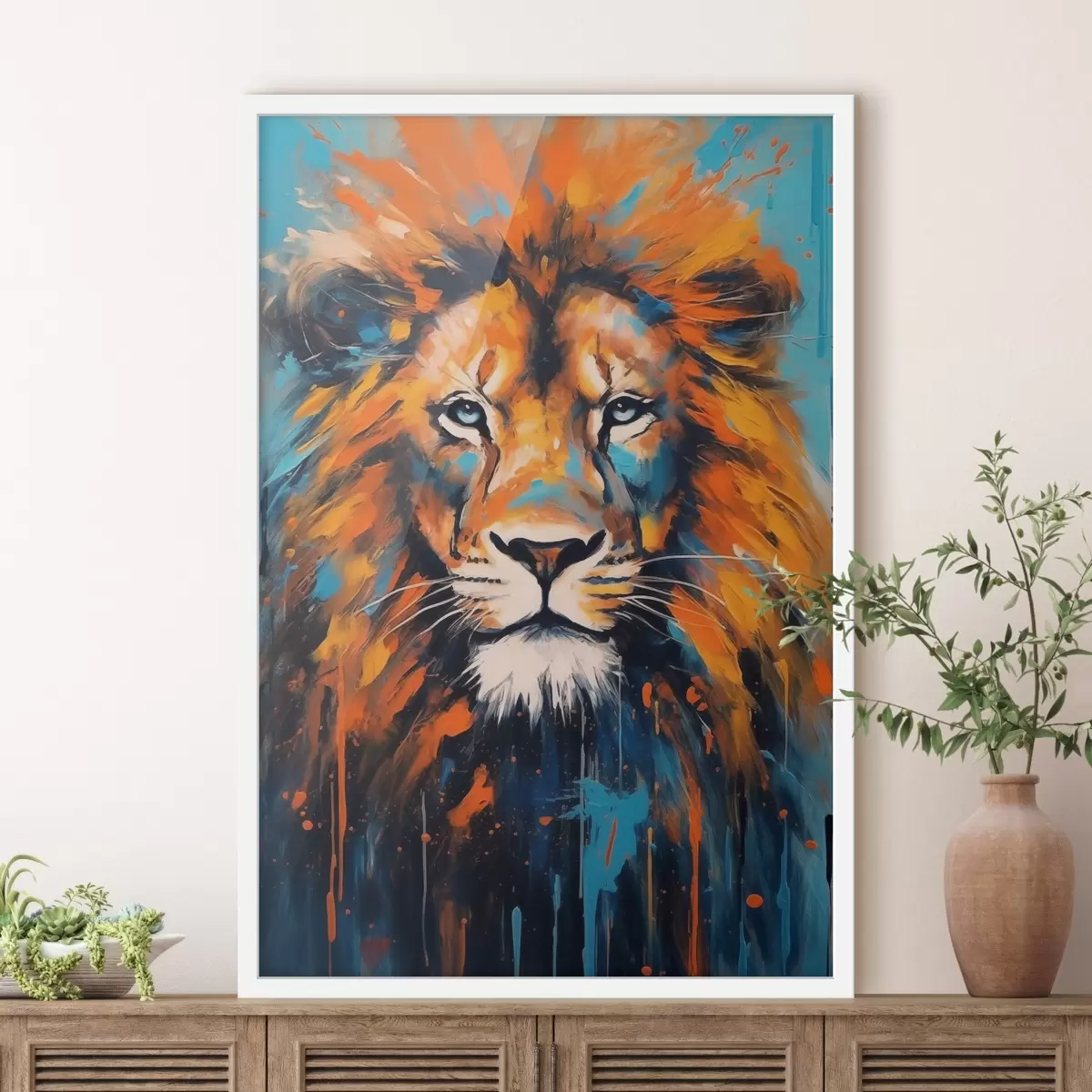 Poster Brillante león abstracto en tonos azules ardientes Nr f41480