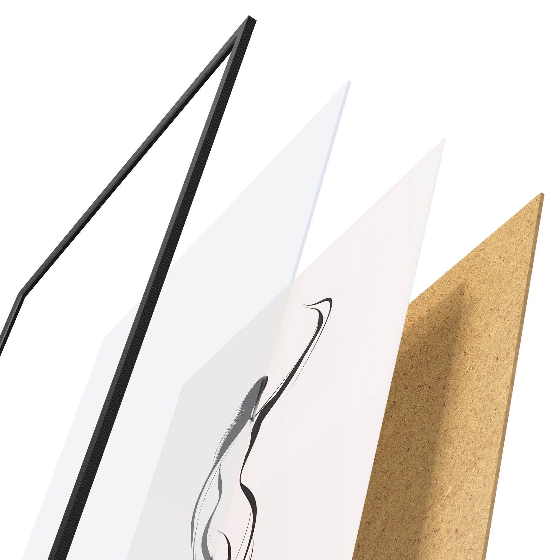 El póster consta de marco, plexiglás, imagen impresa y soporte de aglomerado. El póster puede colgarse inmediatamente en la pared gracias a los soportes de la parte posterior.