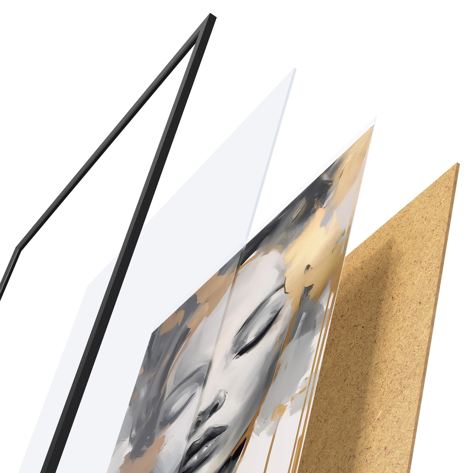 El póster consta de marco, plexiglás, imagen impresa y soporte de aglomerado. El póster puede colgarse inmediatamente en la pared gracias a los soportes de la parte posterior.
