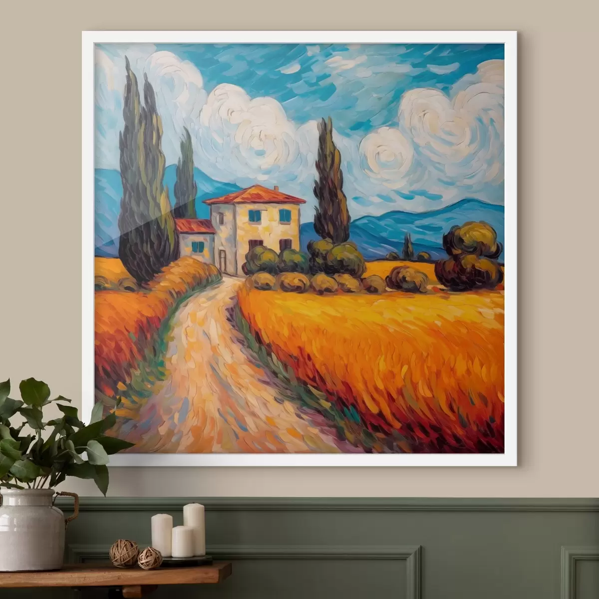 Vendemos cuadros en bastidor: se trata de un marco de madera sobre el que se extiende el lienzo. Este cuadro no necesita marco; puedes colgarlo directamente en la pared.
