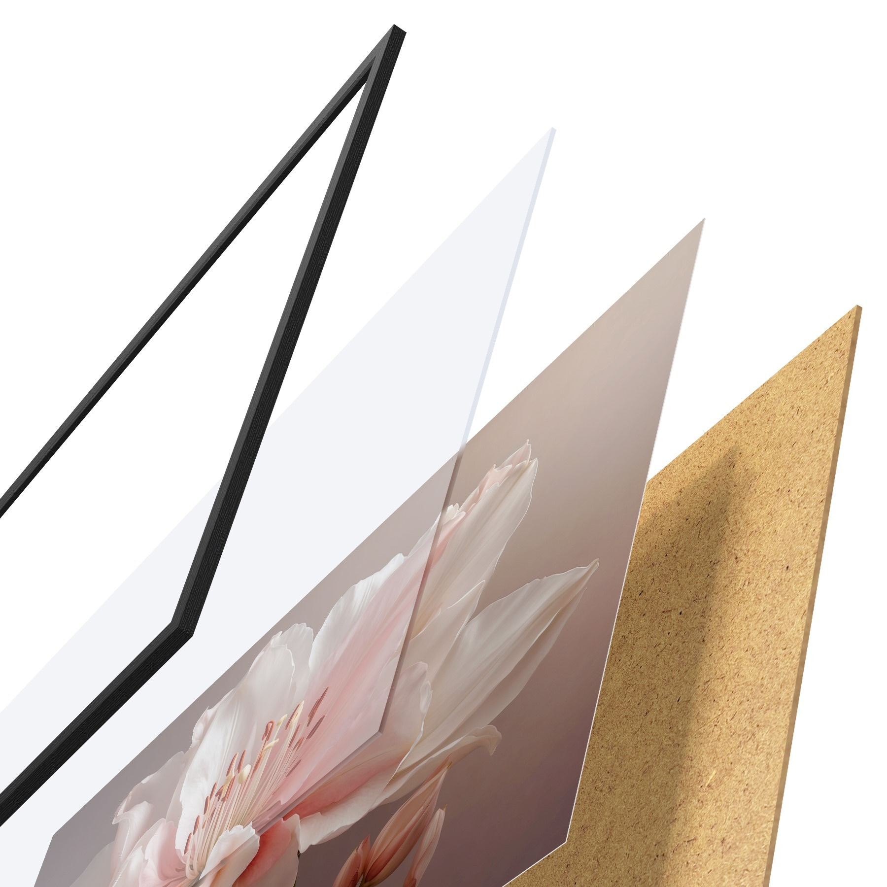 El póster consta de marco, plexiglás, imagen impresa y soporte de aglomerado. El póster puede colgarse inmediatamente en la pared gracias a los soportes de la parte posterior.
