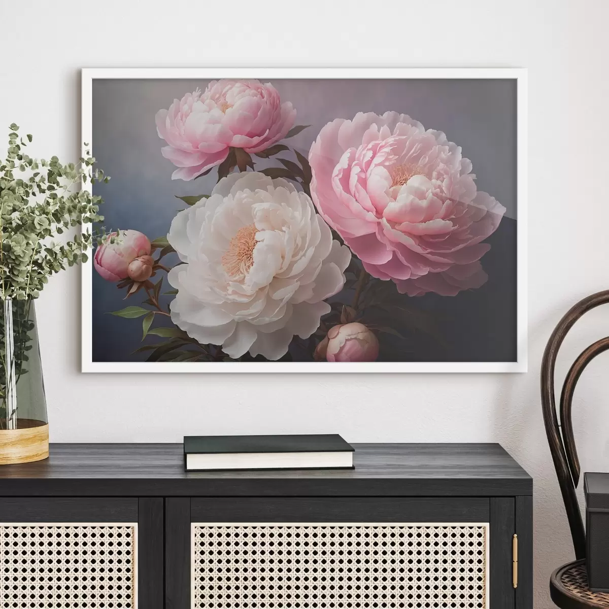 Poster Peonías sobre fondo claro oscuro Nr f41508