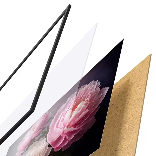El póster consta de marco, plexiglás, imagen impresa y soporte de aglomerado. El póster puede colgarse inmediatamente en la pared gracias a los soportes de la parte posterior.