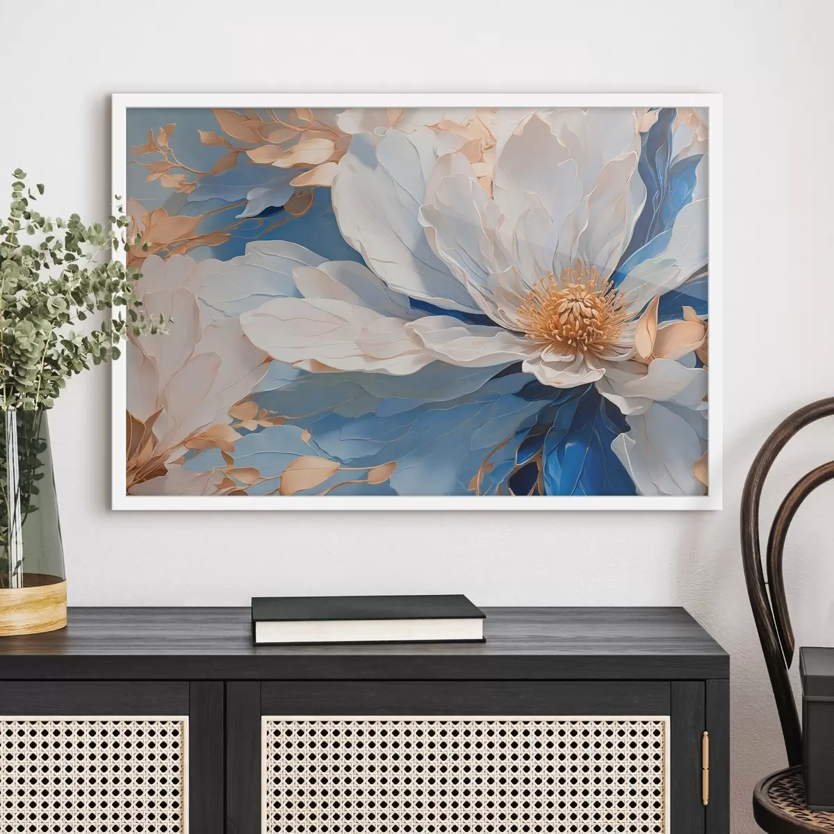 Poster Primer plano de una flor con pétalos blancos y azules Nr f41512