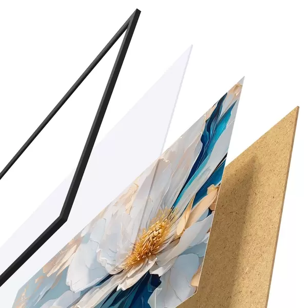 El póster consta de marco, plexiglás, imagen impresa y soporte de aglomerado. El póster puede colgarse inmediatamente en la pared gracias a los soportes de la parte posterior.