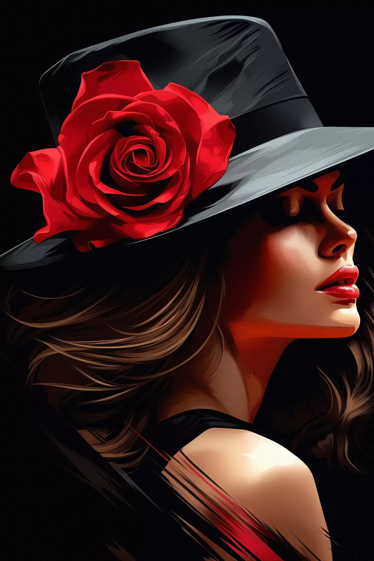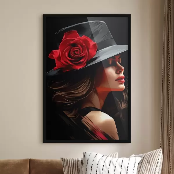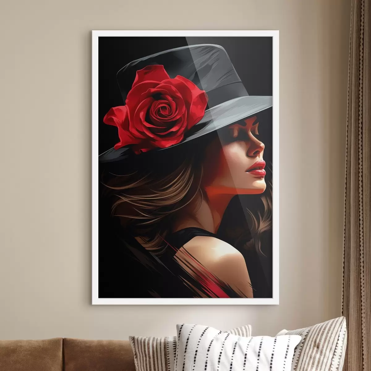 Poster Ilustración chica con sombrero con una hermosa rosa chic Nr f41546