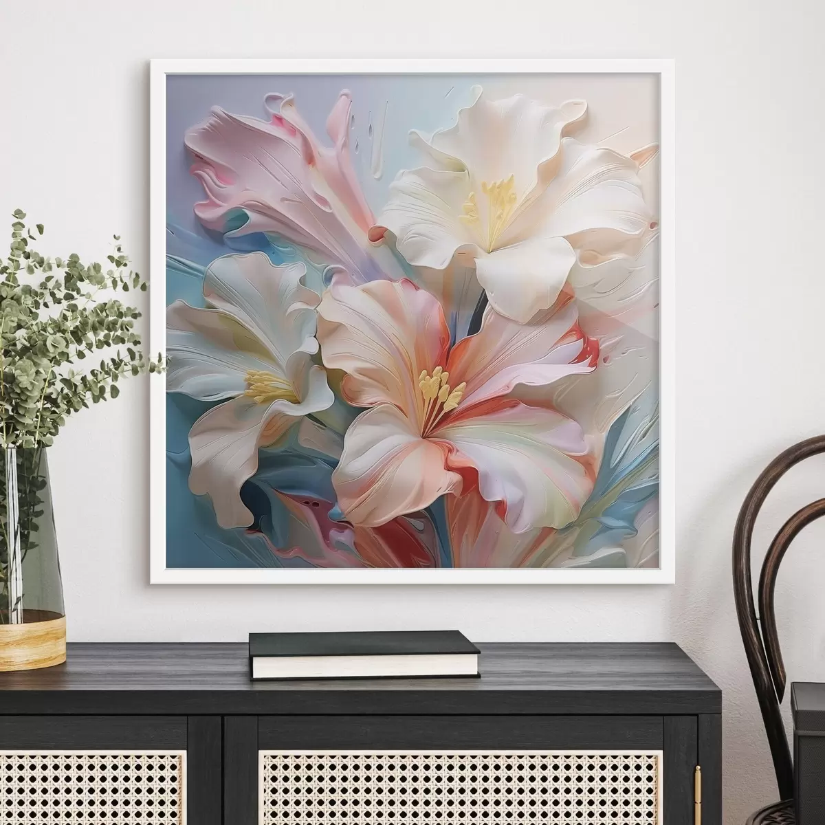 Hay tres tipos de material disponibles para pedidos: Lienzo Económico - material denso y duradero para impresión digital, idéntico al lienzo de pintor, superficie impermeable, reproducción realista de los detalles, material de grano medio. Lienzo Premium - la textura se asemeja a la de un lienzo de pintor (pequeños hilos entrelazados). Reproducción suave y detallada de la imagen sobre una superficie mate. Eco-Premium - tejido 100% algodón de alta calidad. Gracias a las fibras naturales de algodón, el material es duradero y resistente al desgaste. Excelente reproducción del color y el detalle.