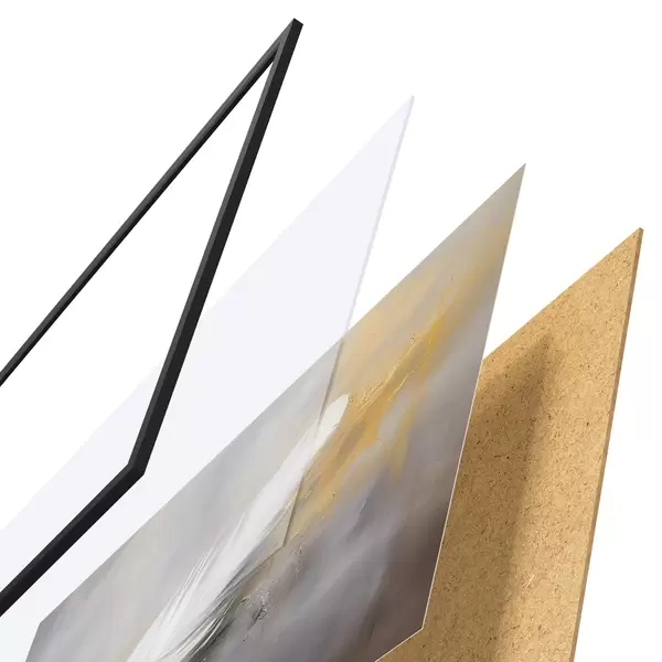 El póster consta de marco, plexiglás, imagen impresa y soporte de aglomerado. El póster puede colgarse inmediatamente en la pared gracias a los soportes de la parte posterior.