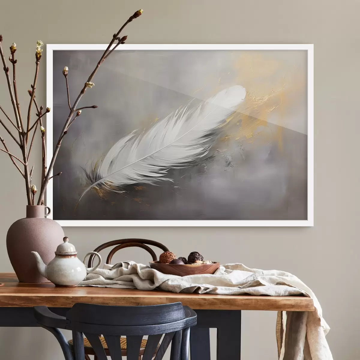 Poster Pluma blanca sobre fondo gris Nr f41557