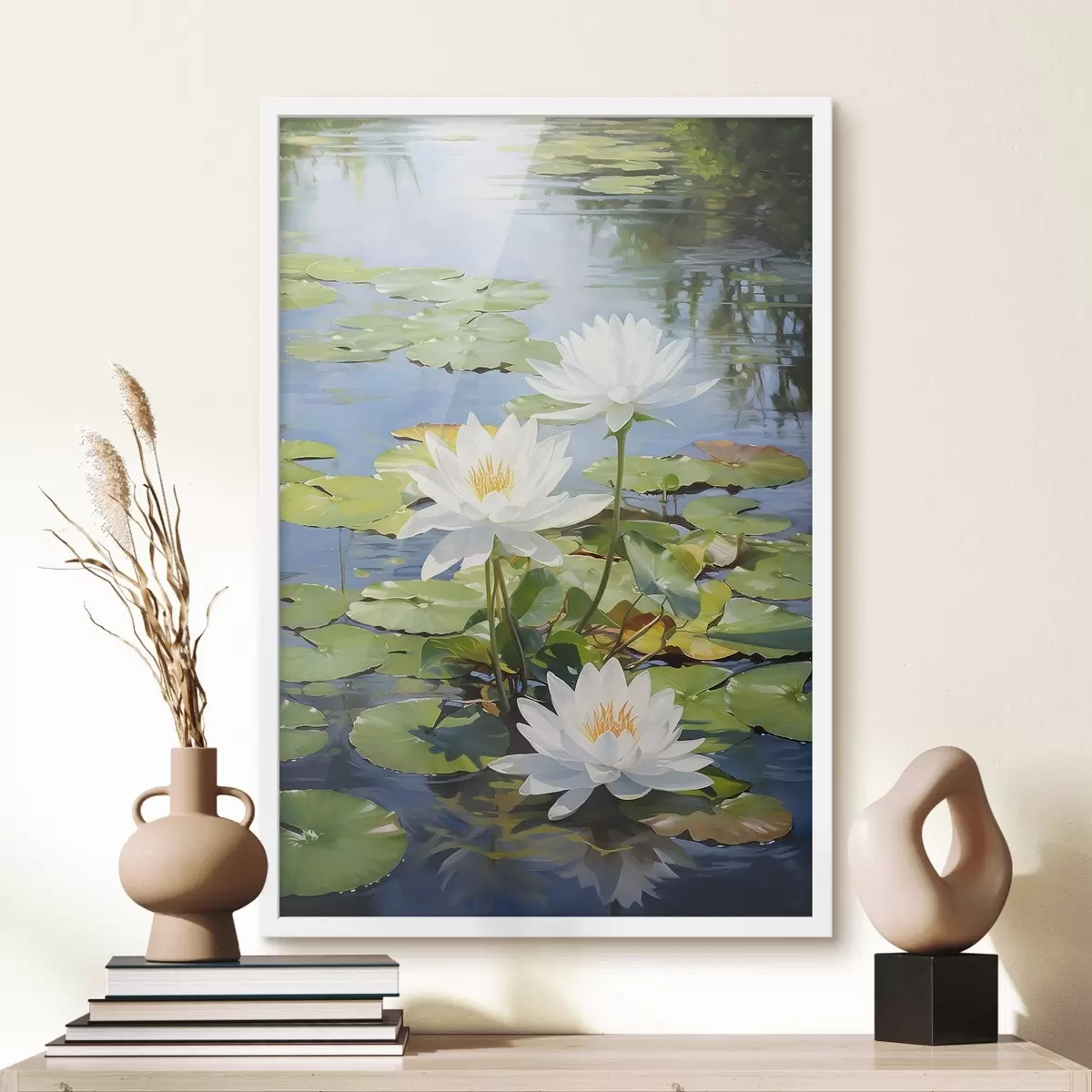Poster Tres nenúfares blancos, flores de loto Nr f41572