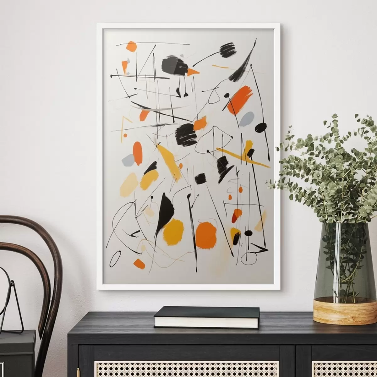 El póster consta de marco, plexiglás, imagen impresa y soporte de aglomerado. El póster puede colgarse inmediatamente en la pared gracias a los soportes de la parte posterior.