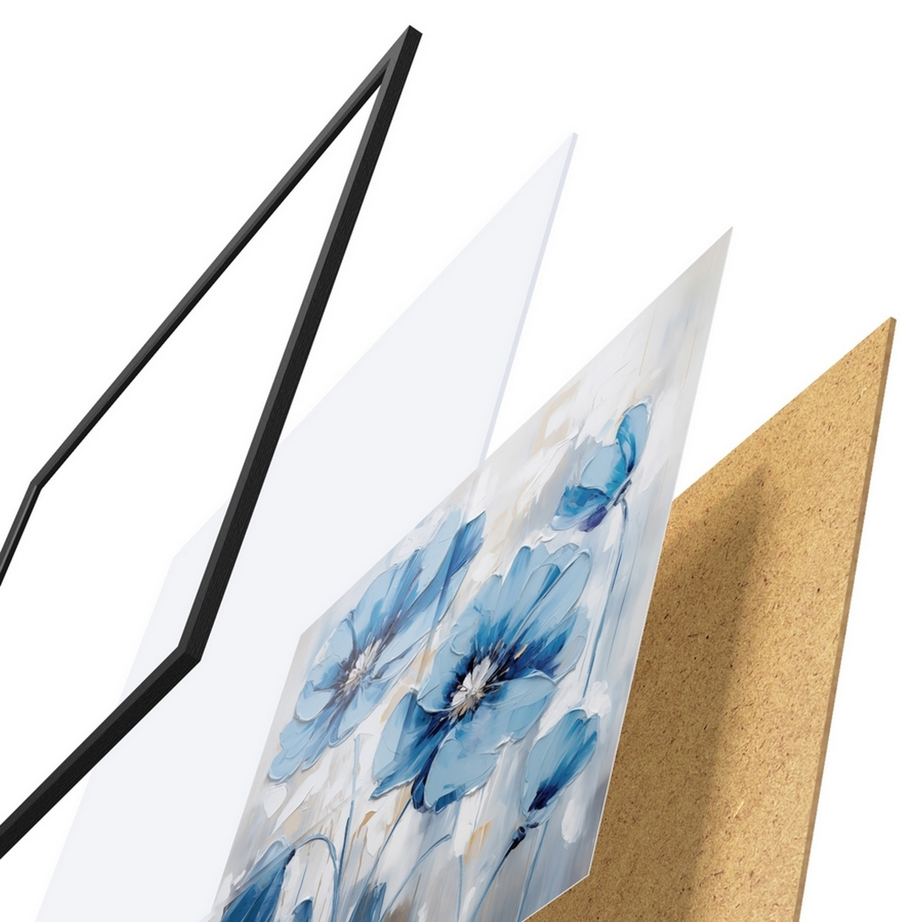 El póster consta de marco, plexiglás, imagen impresa y soporte de aglomerado. El póster puede colgarse inmediatamente en la pared gracias a los soportes de la parte posterior.