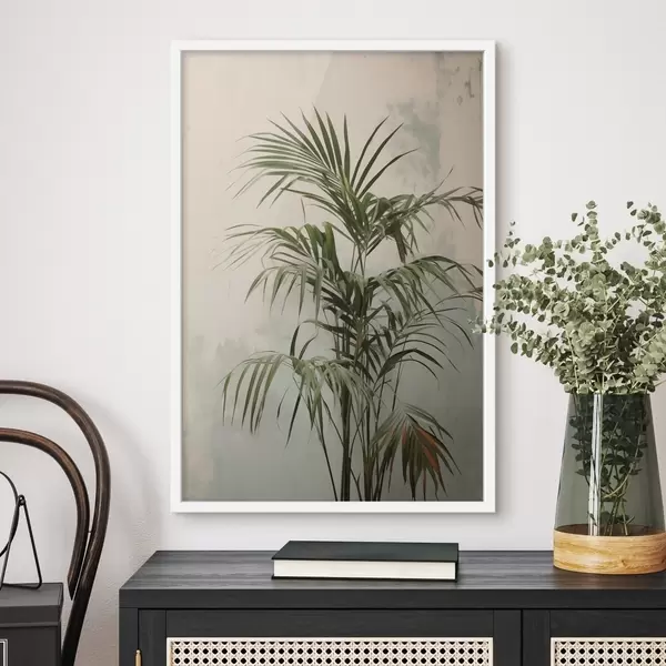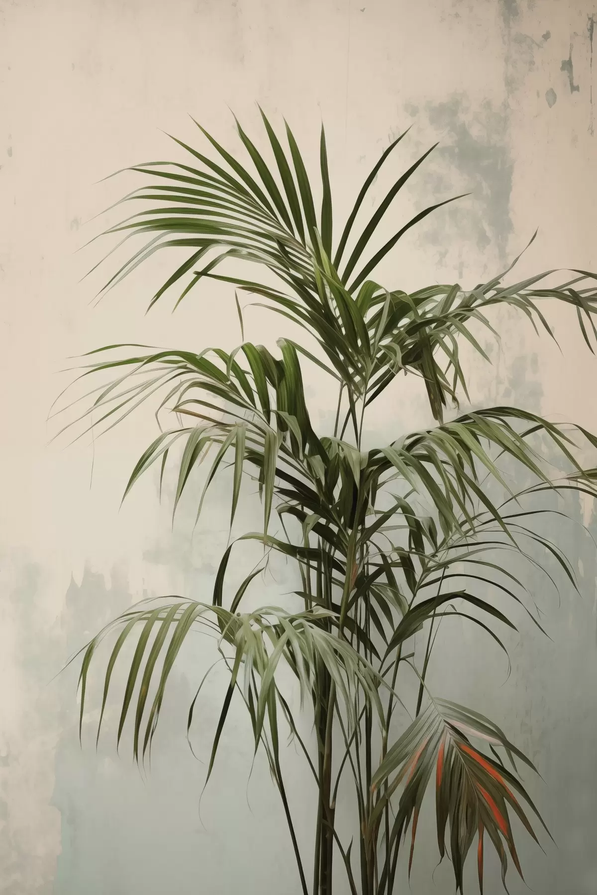 Poster Ramas de palmera contra una pared desgastada Nr f41660