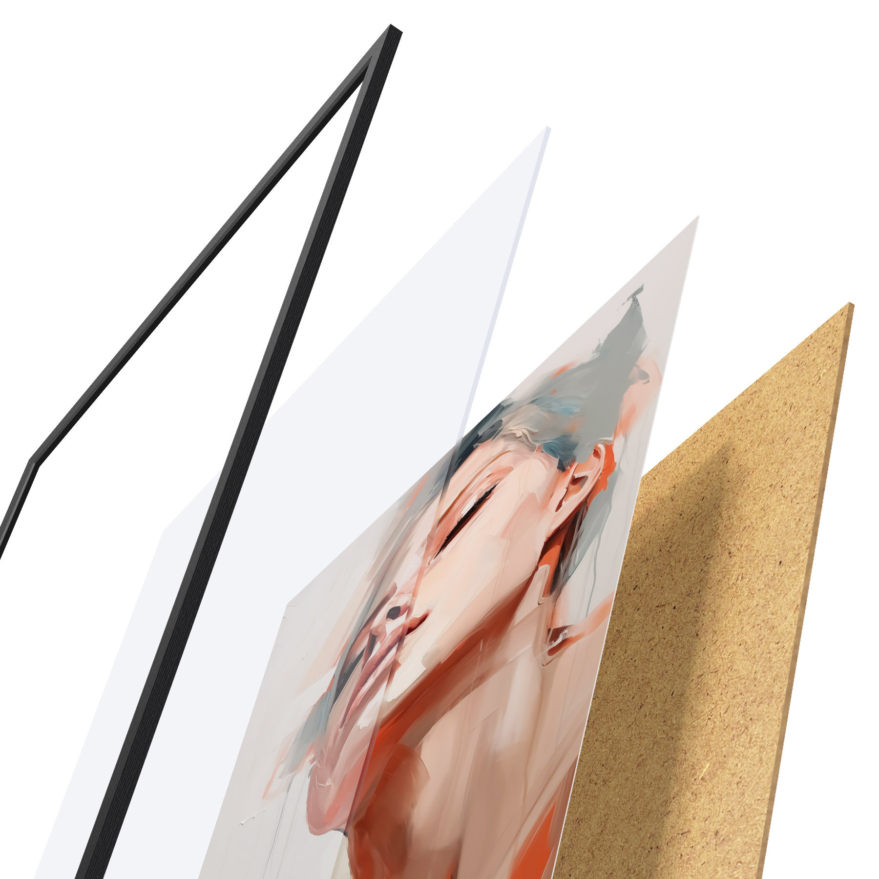 El póster consta de marco, plexiglás, imagen impresa y soporte de aglomerado. El póster puede colgarse inmediatamente en la pared gracias a los soportes de la parte posterior.