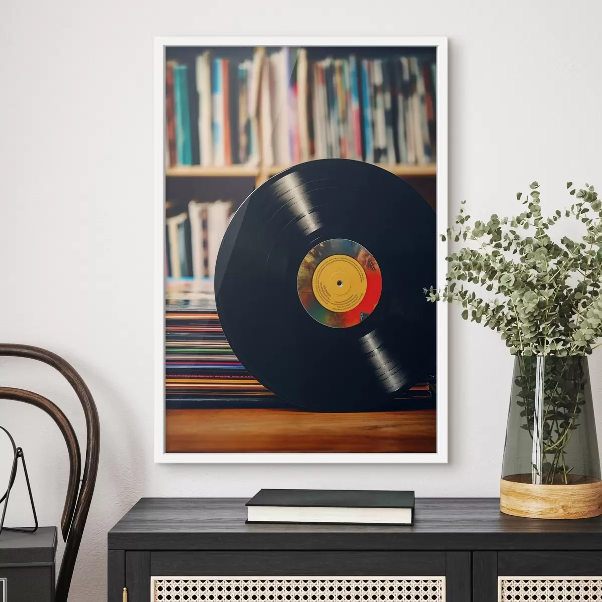 Poster Disco de vinilo en el fondo de la estantería Nr f41669