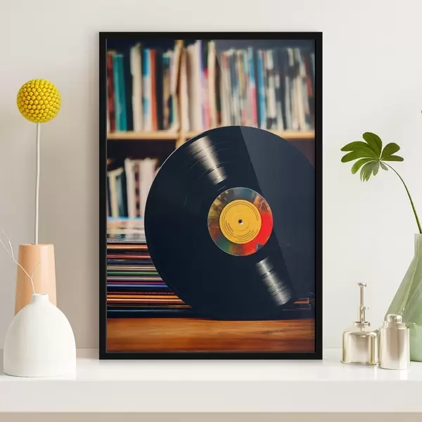 Poster Disco de vinilo en el fondo de la estantería f41669