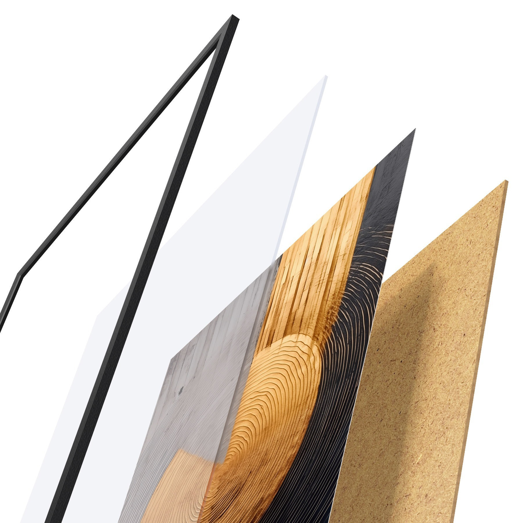 El póster consta de marco, plexiglás, imagen impresa y soporte de aglomerado. El póster puede colgarse inmediatamente en la pared gracias a los soportes de la parte posterior.