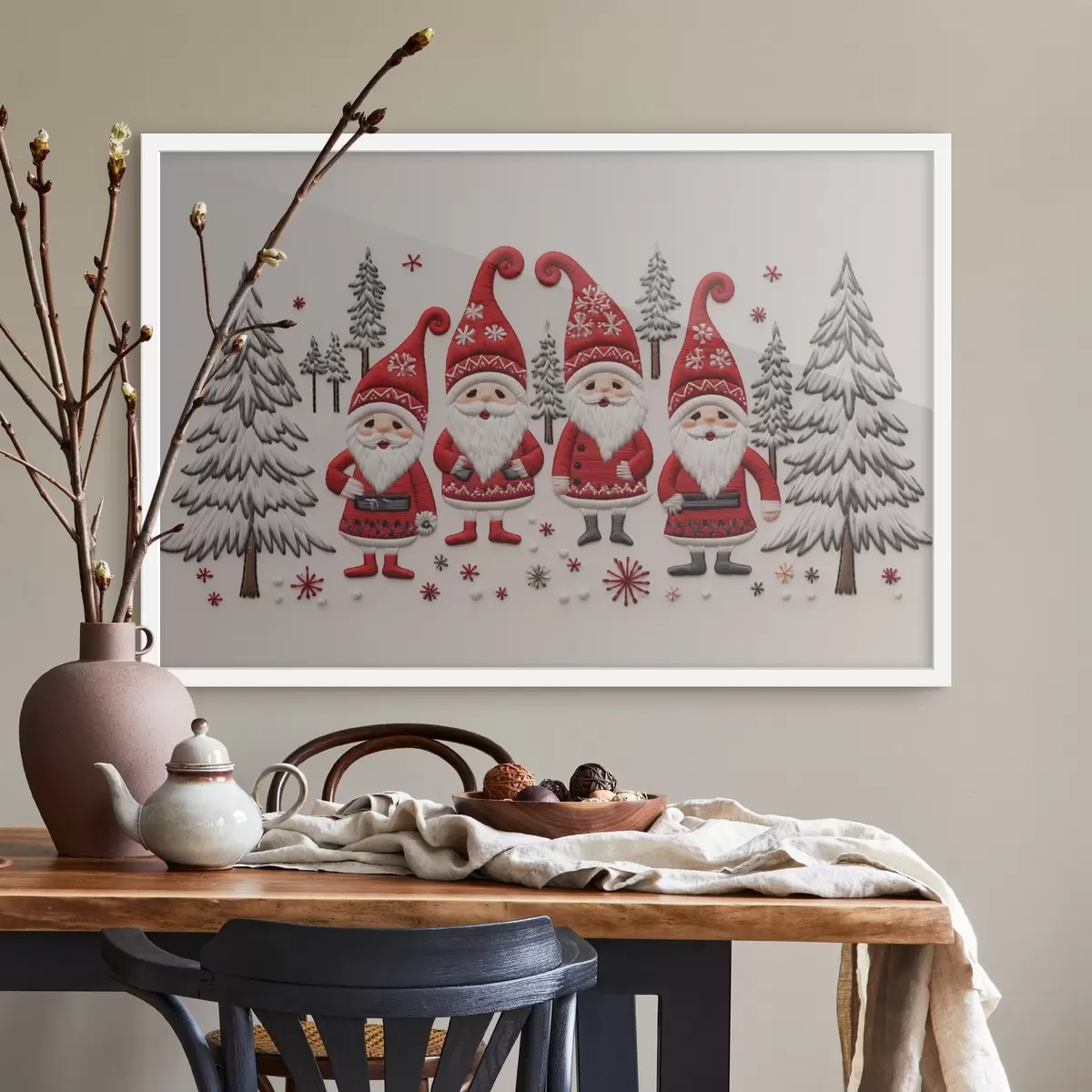 Poster Gnomos de Navidad en el bosque con efecto de textura f41699