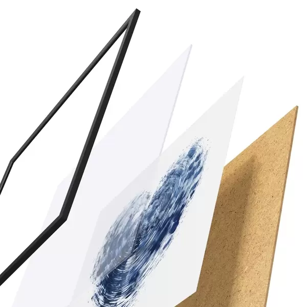 El póster consta de marco, plexiglás, imagen impresa y soporte de aglomerado. El póster puede colgarse inmediatamente en la pared gracias a los soportes de la parte posterior.