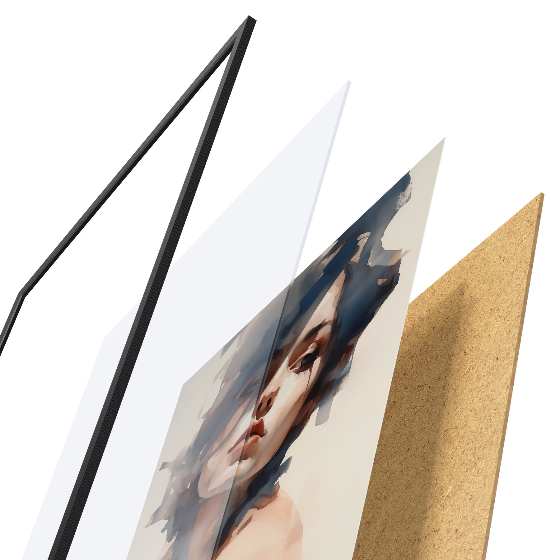 El póster consta de marco, plexiglás, imagen impresa y soporte de aglomerado. El póster puede colgarse inmediatamente en la pared gracias a los soportes de la parte posterior.
