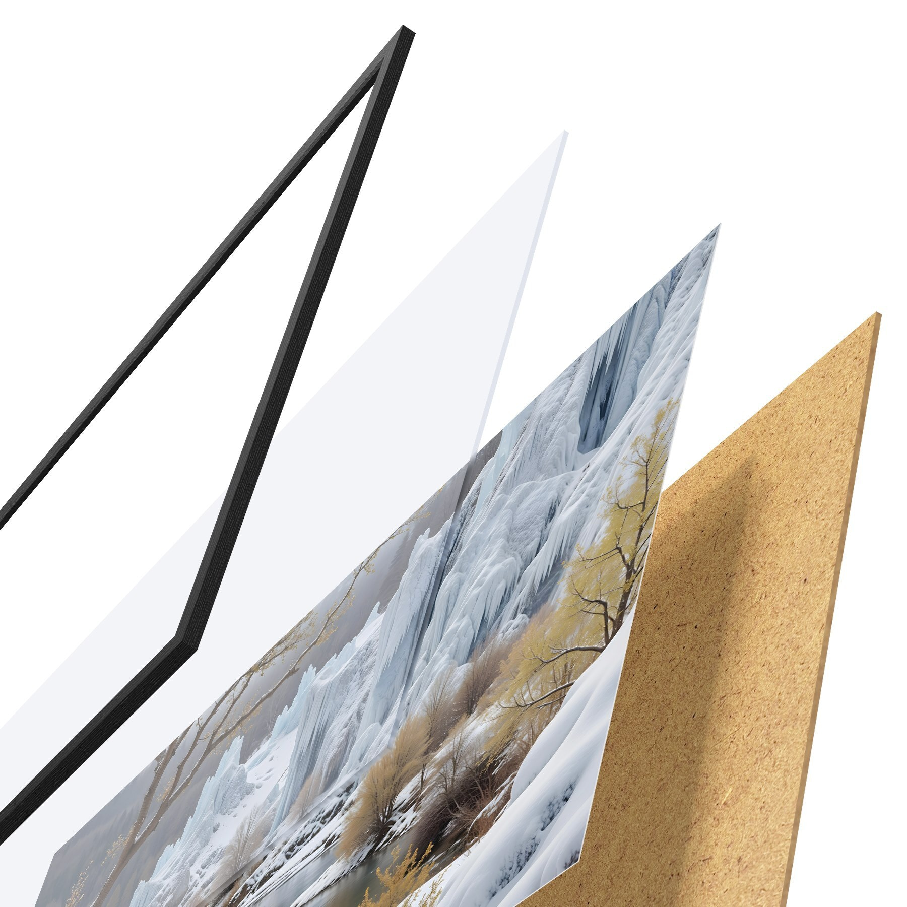 El póster consta de marco, plexiglás, imagen impresa y soporte de aglomerado. El póster puede colgarse inmediatamente en la pared gracias a los soportes de la parte posterior.