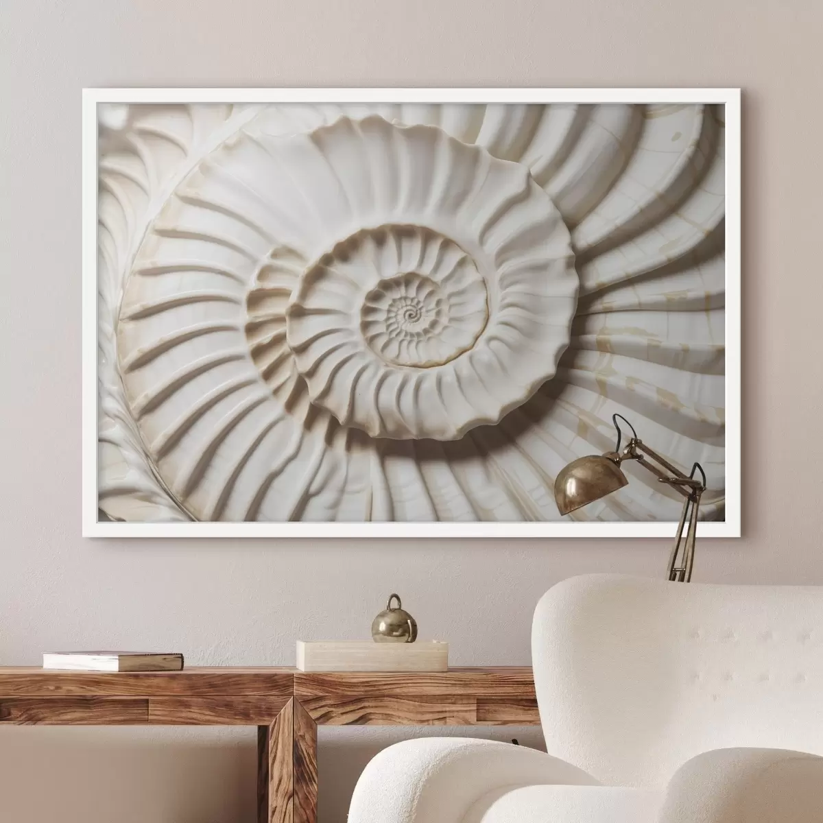 Poster Concha espiral blanca, que muestra su intrincado y detallado dibujo f41728
