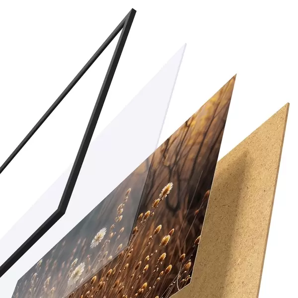 El póster consta de marco, plexiglás, imagen impresa y soporte de aglomerado. El póster puede colgarse inmediatamente en la pared gracias a los soportes de la parte posterior.