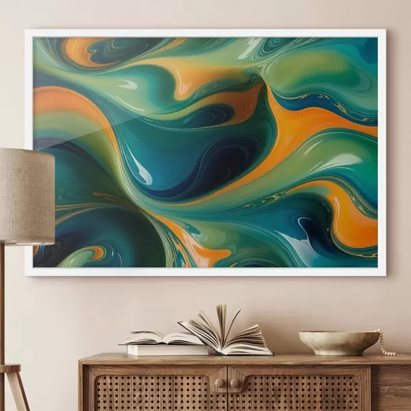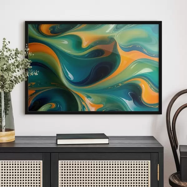 Poster Motivos abstractos arremolinados en tonos verdes, azules y naranjas con formas y texturas fluidas y orgánicas Nr f41737