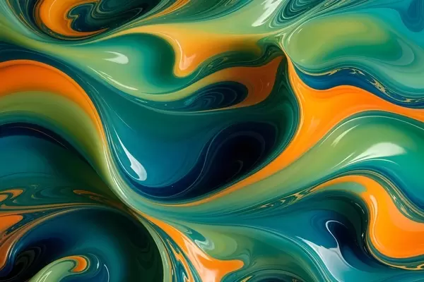 Poster Motivos abstractos arremolinados en tonos verdes, azules y naranjas con formas y texturas fluidas y orgánicas Nr f41737