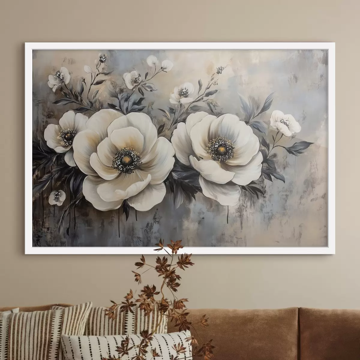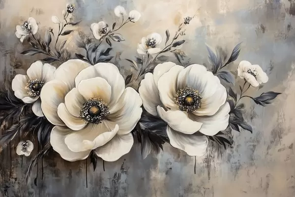 Poster Ramo de flores blancas en estilo vintage f41828