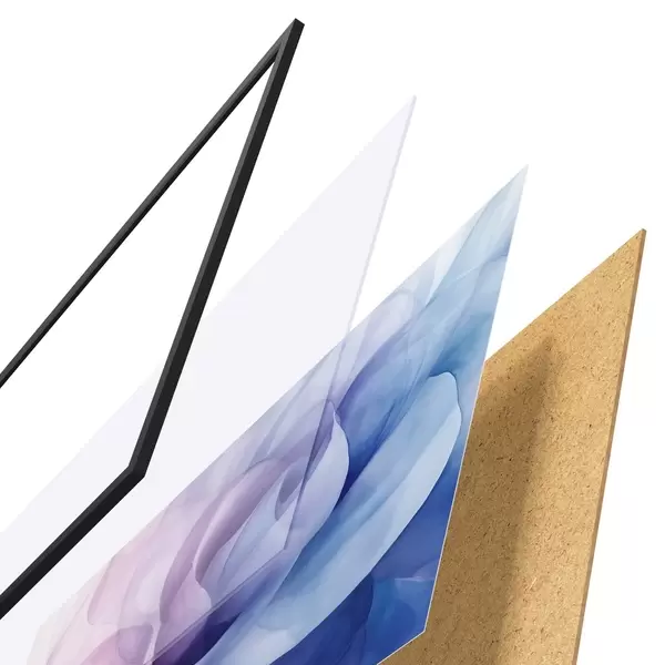 El póster consta de marco, plexiglás, imagen impresa y soporte de aglomerado. El póster puede colgarse inmediatamente en la pared gracias a los soportes de la parte posterior.