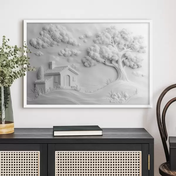 Poster imitación en 3D del estuco de una casa de campo en el pueblo f41878