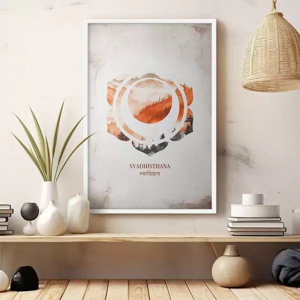 Poster Svadhisthana chakra, chakra naranja, esotérico, meditación, budismo, montañas estilo acuarela f41881