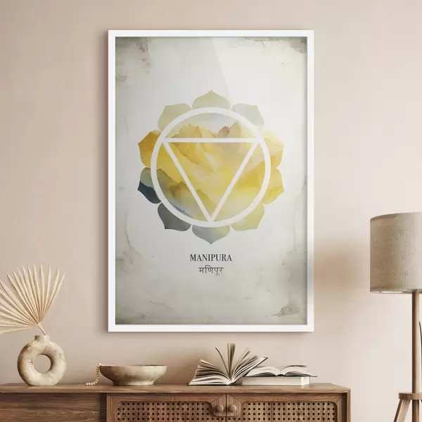 Poster Manipura chakra, chakra amarillo, esotérico, meditación, budismo, montañas estilo acuarela Nr f41882