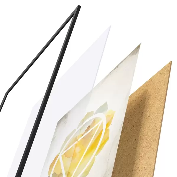 El póster consta de marco, plexiglás, imagen impresa y soporte de aglomerado. El póster puede colgarse inmediatamente en la pared gracias a los soportes de la parte posterior.