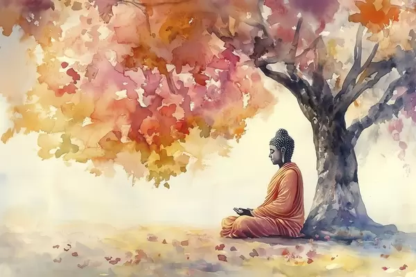 Poster Buda meditando bajo el árbol, estilo acuarela, otoño, esotérico f41887
