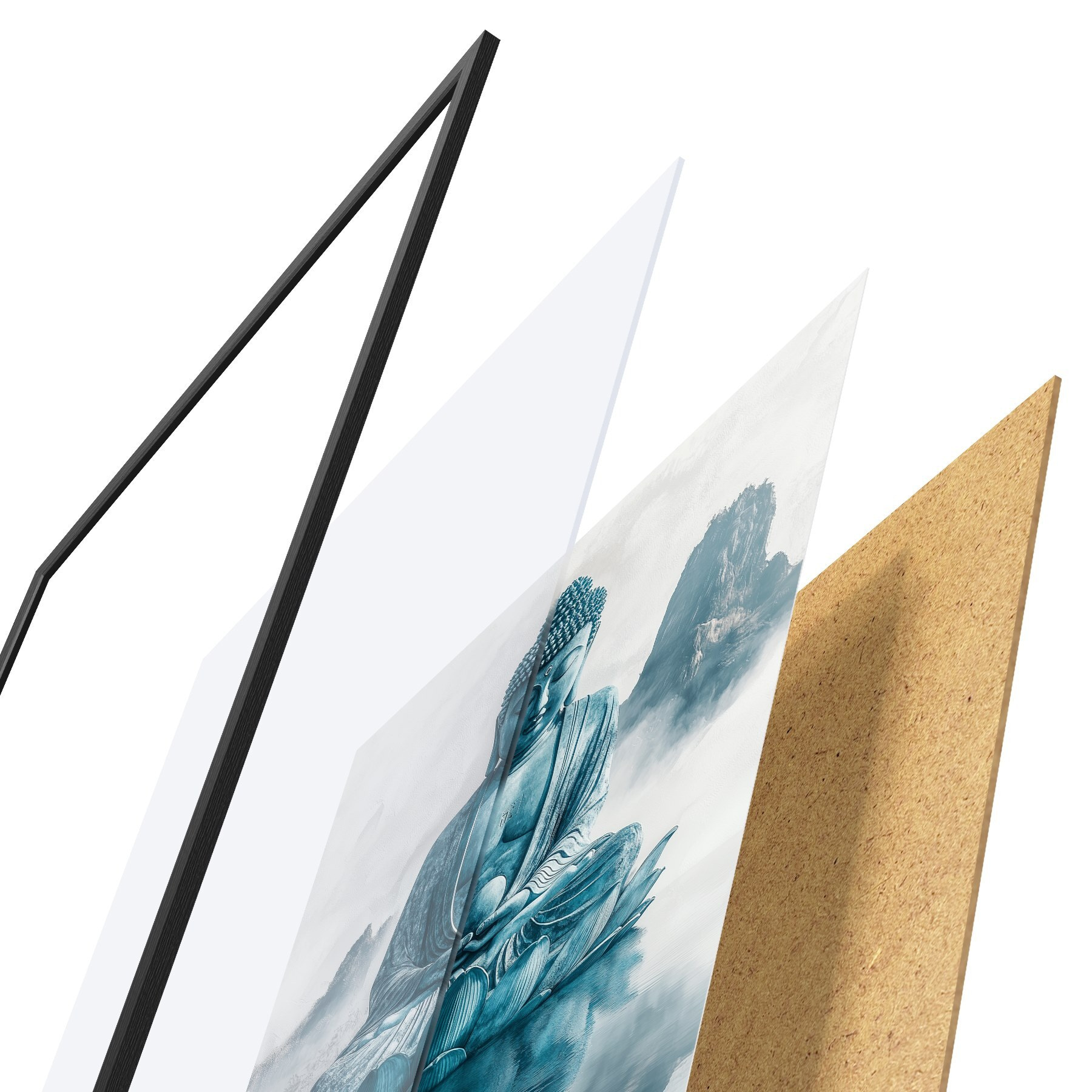 El póster consta de marco, plexiglás, imagen impresa y soporte de aglomerado. El póster puede colgarse inmediatamente en la pared gracias a los soportes de la parte posterior.