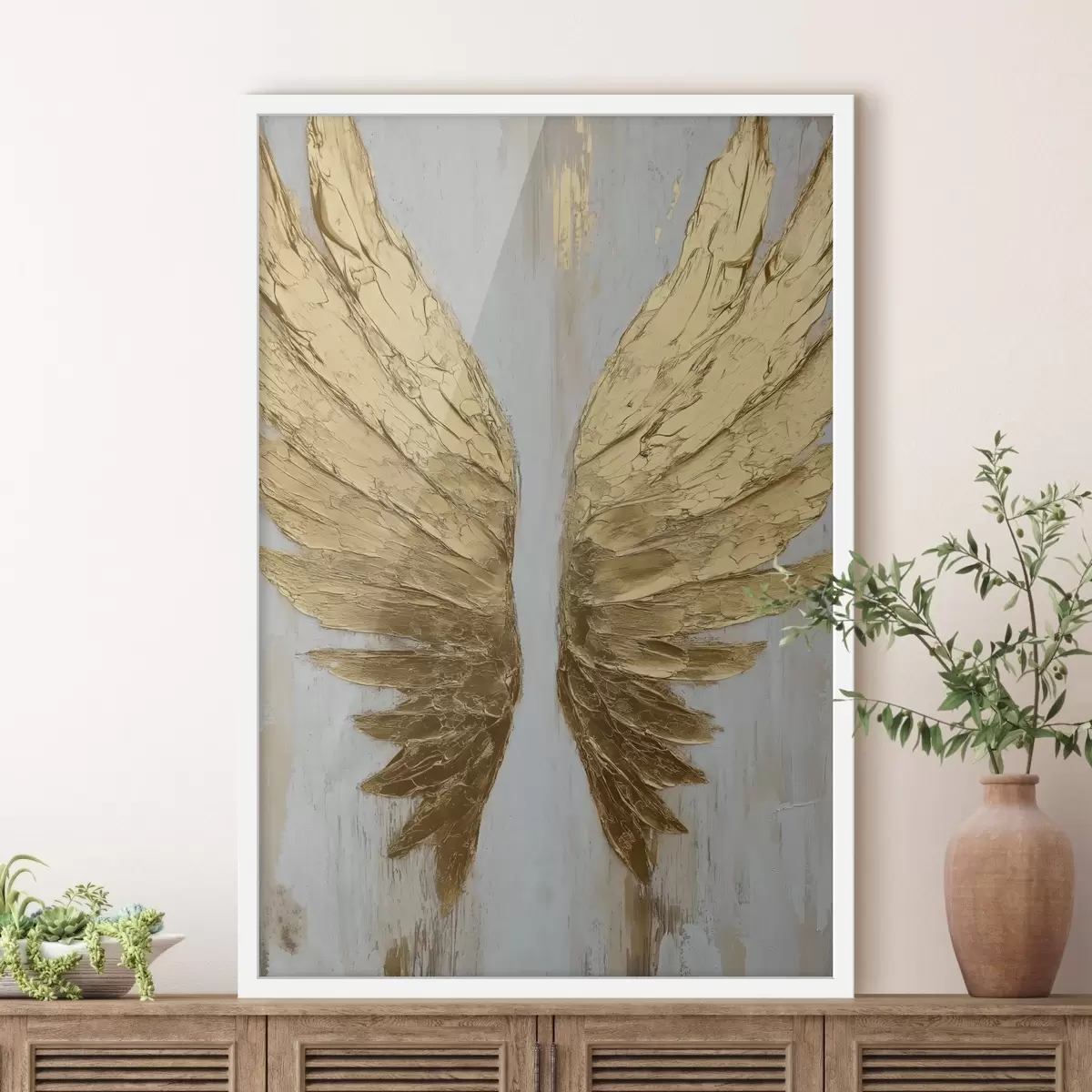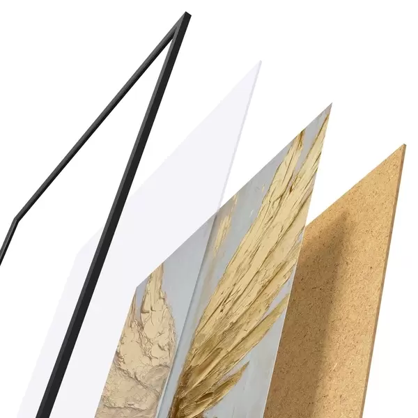 El póster consta de marco, plexiglás, imagen impresa y soporte de aglomerado. El póster puede colgarse inmediatamente en la pared gracias a los soportes de la parte posterior.