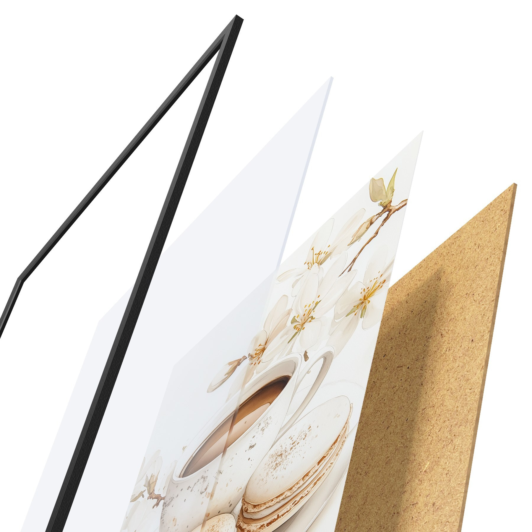 Poster Taza de café con macarrones, estilo acuarela, colores suaves, flores de jazmín f41949