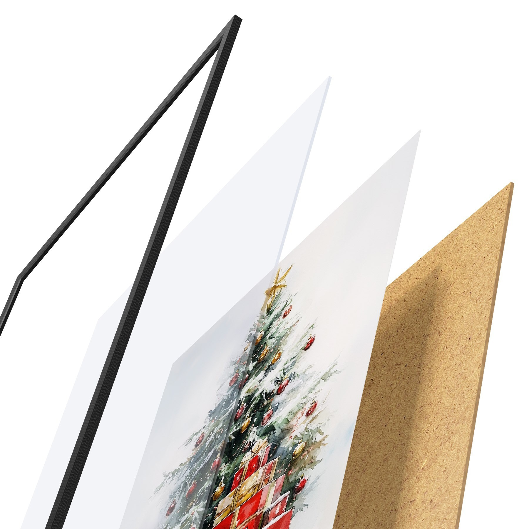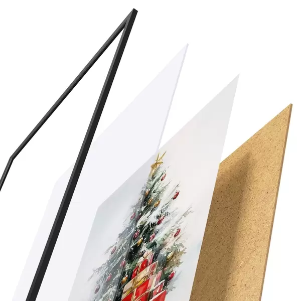 El póster consta de marco, plexiglás, imagen impresa y soporte de aglomerado. El póster puede colgarse inmediatamente en la pared gracias a los soportes de la parte posterior.